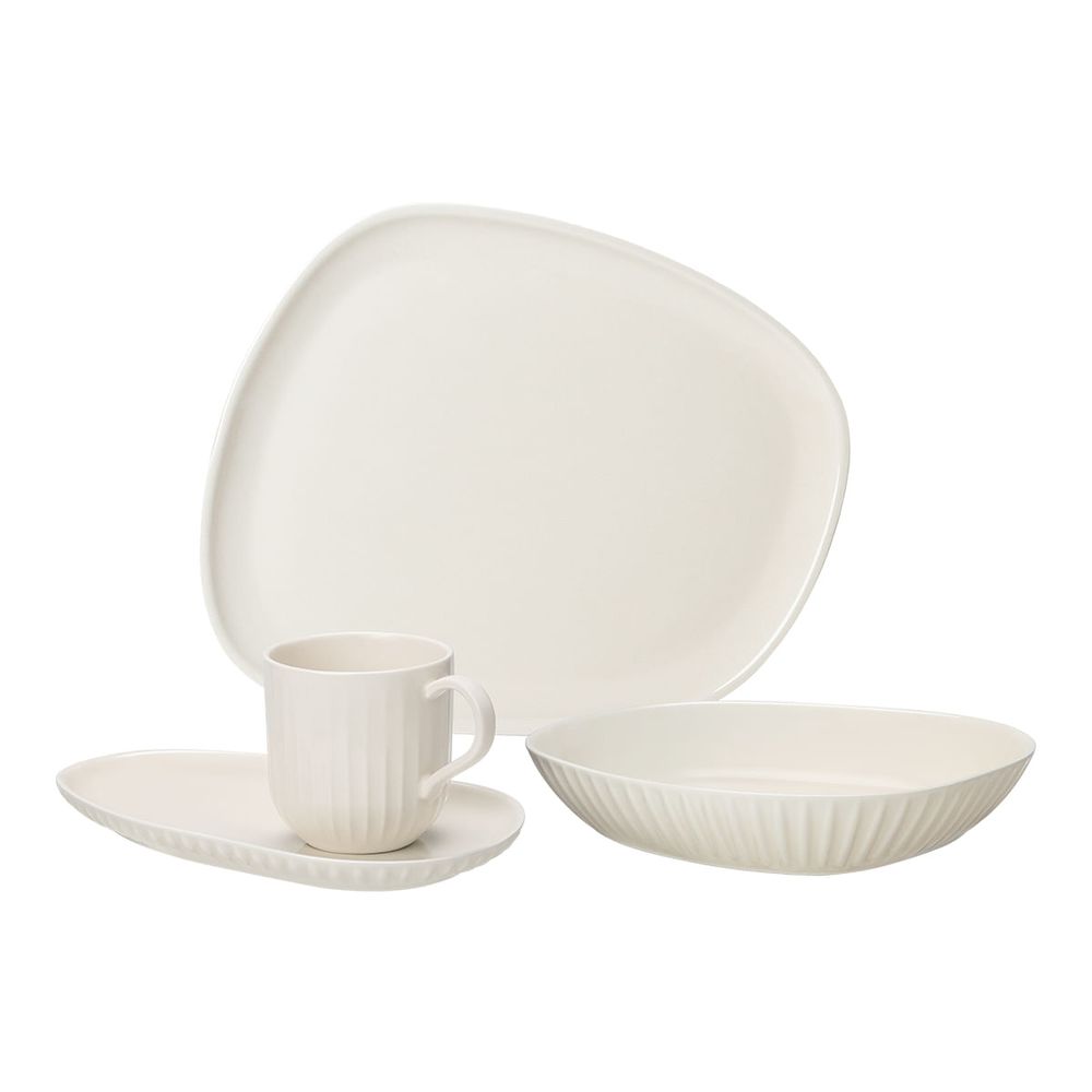 | Conteúdo da embalagem | 4 pratos rasos 26,5 cm x 22,2 cm / 4 pratos fundos 21,5 cm x 18 cm / 4 sobremesa 24,8 cm x 14 cm/ 4 canecas 260 ml |