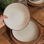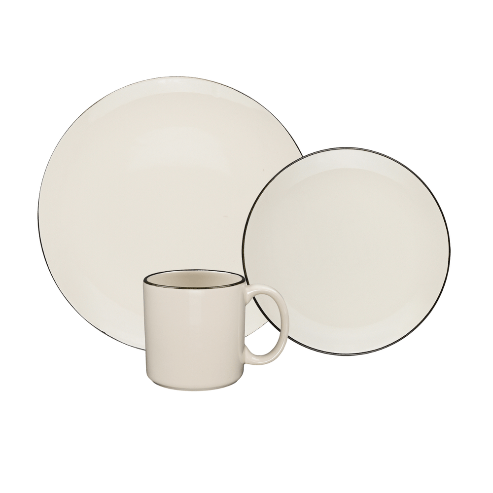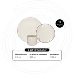 É o conjunto ideal para quem busca uma louça neutra com detalhe de borda fácil de compor com outras peças.
