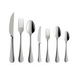 | Conteúdo da embalagem | 6 Facas de churrasco 21,5 cm, 6 garfos de mesa 20 cm, 6 colheres de mesa 19,5 cm, 6 facas de sobremesa 16,8 cm, 6 garfos de sobremesa 16,9 cm, 6 colheres para sobremesa 16 cm, 6 colheres de chá 14 cm |