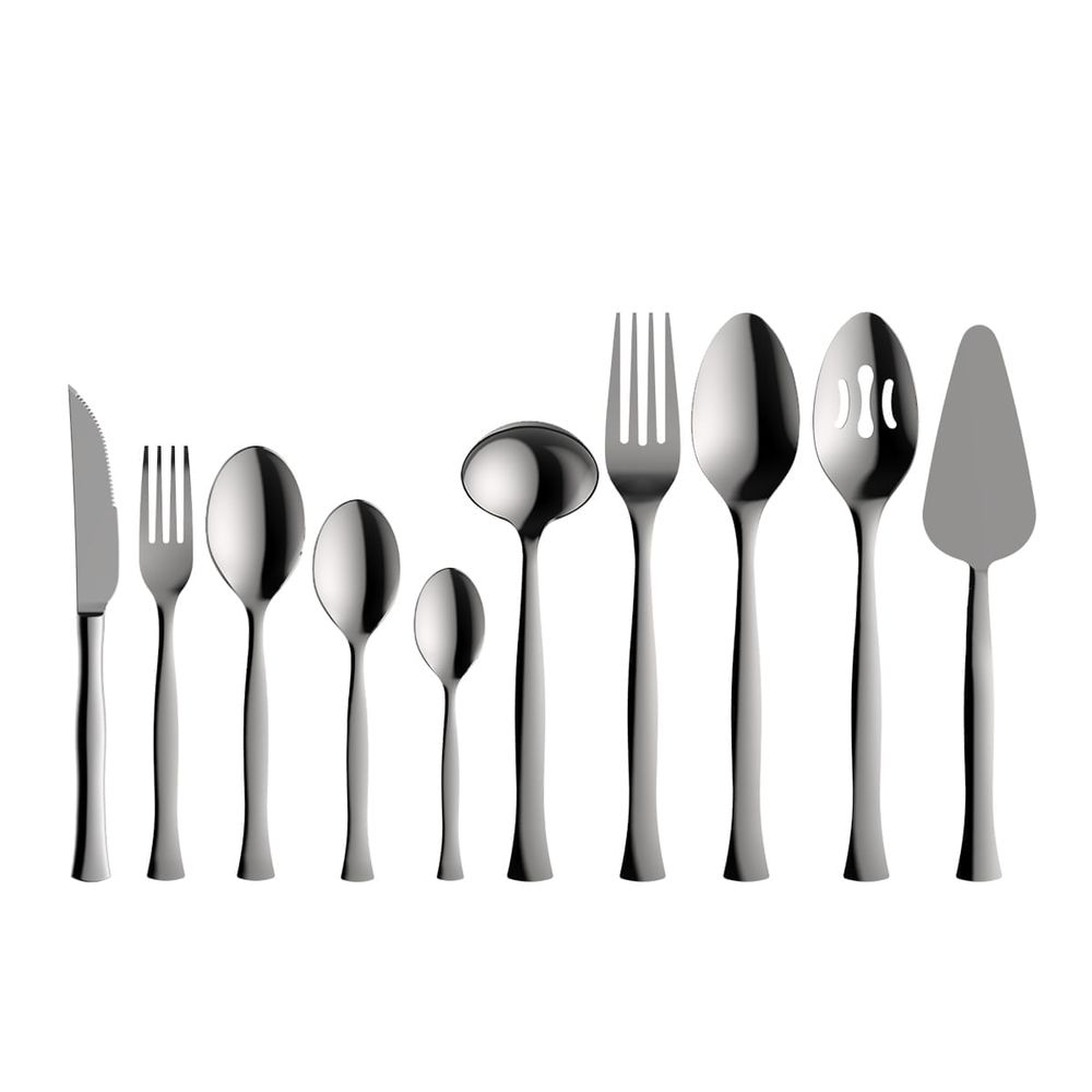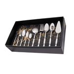 | Conteúdo da embalagem | 12 facas de churrasco 22,5 cm; 12 garfos de mesa 19,5 cm; 12 colheres de mesa 19,5 cm; 12 colheres de sobremesa 16 cm; 12 colheres de chá 14 cm; 1 concha 25,5 cm; 1 garfo de servir 25,5 cm; 1 colher de servir 25,5 cm; 1 colher de servir vazada 25,5 cm; 1 espátula para bolo 25,5 cm; |