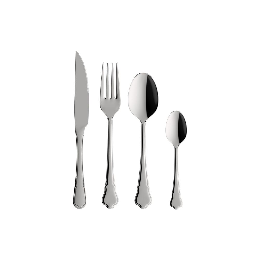 | Conteúdo da embalagem | 6 Facas de churrasco 22,5 cm, 6 garfos de mesa 20 cm, 6 colheres de mesa 19,5 cm, 6 colheres de chá 14 cm |
