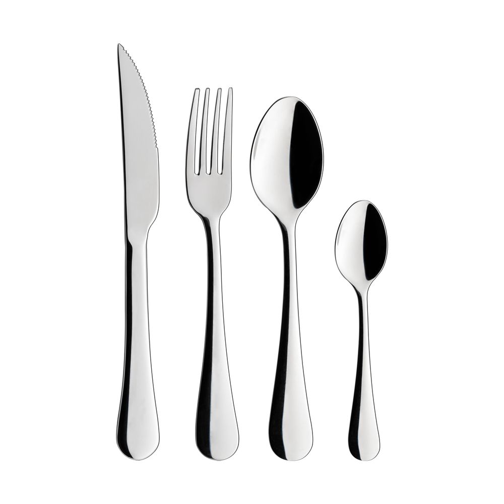 Salvador, a melhor linha de talheres profissionais feitos com o aço inox conhecido como 18/10, o mais resistente e indicado para o uso extremo de cozinhas profissionais ou domésticas. O faqueiro em aço inox 24 peças Salvador possui facas temperadas de alta durabilidade no fio de corte e resistência à corrosão, evitando danos em peças de louça.