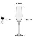 | Conteúdo da embalagem | 6 Taças De Cristal Para Espumante 210 Ml / 6 Taças De Cristal Para Chardonnay 570 Ml / 6 Taças De Cristal Bourgogne 610 Ml / 6 Taças De Cristal 340 Ml |