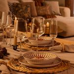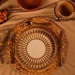 O jogo de pratos fundos Flat Atlas apresenta padrões geométricos em amarelo queimado, inspirados nos mosaicos do Marrocos. Sua estampa faz referência às Montanhas do Atlas e à tradição marroquina, o que confere personalidade e identidade cultural únicas a essa cerâmica.