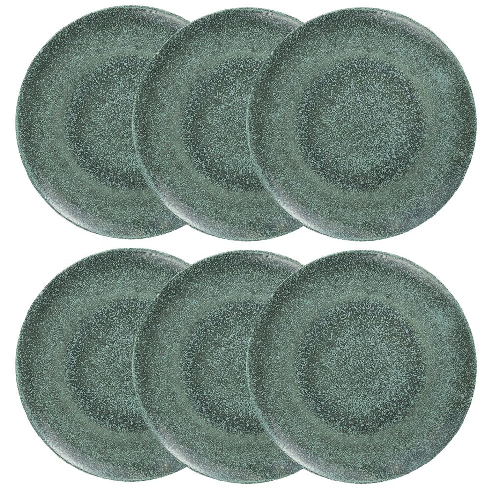 O jogo de 6 pratos rasos Lira traduz a serenidade do verde mineral em uma composição inspirada na poesia e na suavidade do som da lira, instrumento originário da Grécia Antiga. O acabamento reagente confere profundidade à superfície, criando uma estampa contemporânea que transmite frescor e harmonia à mesa posta.