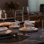 A linha Petra traz toda a resistência do cristal Alumina em uma proposta contemporânea de bojo com paredes retilíneas, estrutura cônica e formato imponente. A taça para espumante tem capacidade para 340 ml.