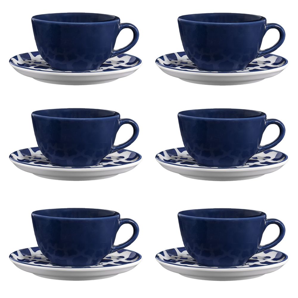 Jogo de 6 Xícaras Grandes 200 Ml Com Pires Flat Sevilha