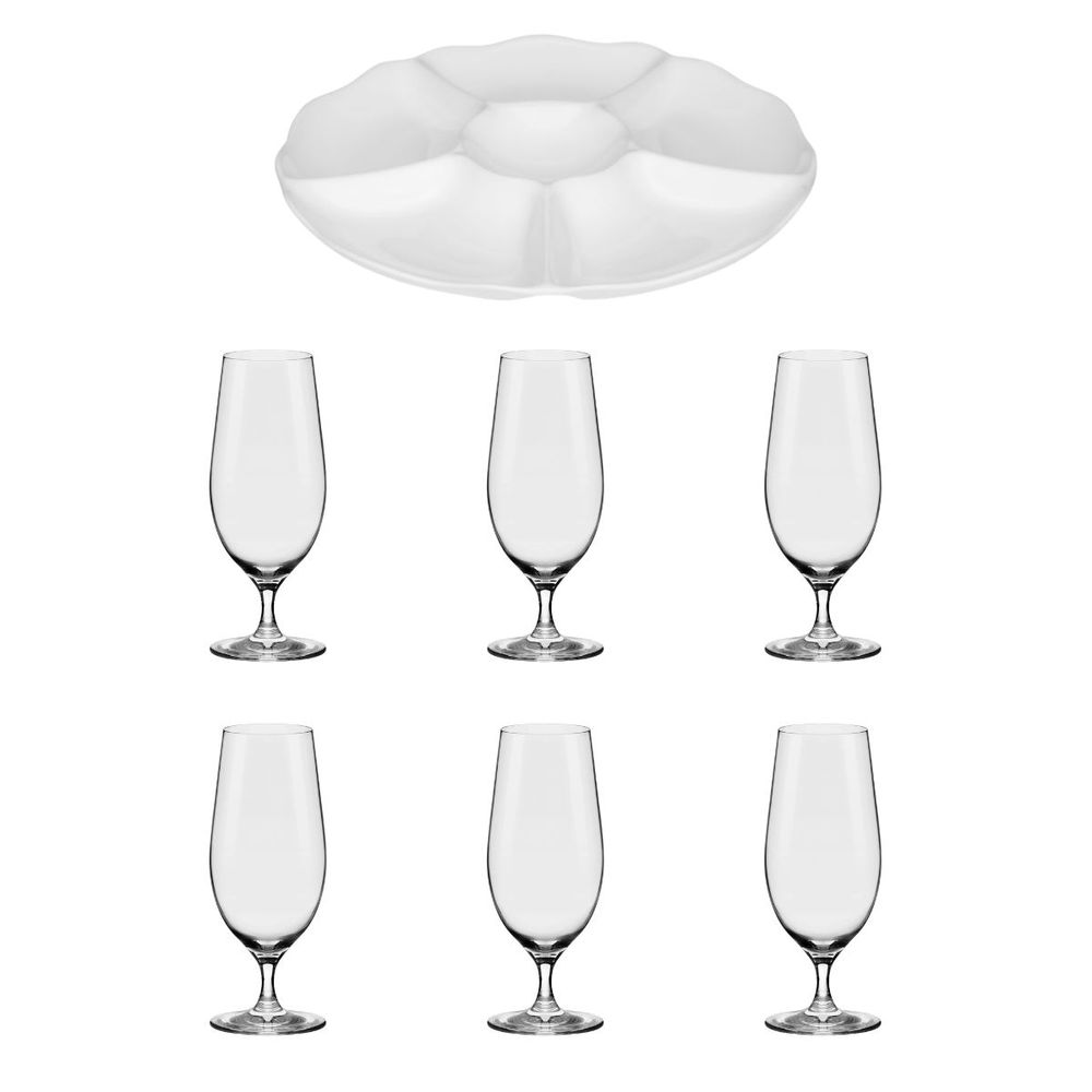 Kit Petisqueira Oxford 28 Cm + 6 Taças de Cristal para Cerveja 460 ml