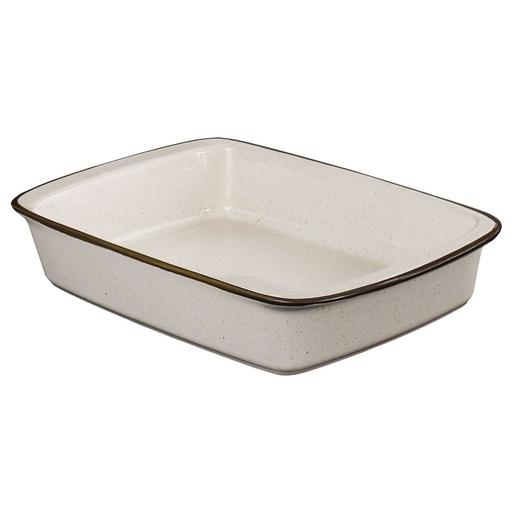 A Travessa Refratária Tango possui bordas afinadas e alças de segurança que ajudam no manuseio seguro, especialmente quando a peça está quente. Produzida em cerâmica refratária, a assadeira é indicada para uso no forno até 280°C, sempre apoiada nas grades internas. Na opção grande, a peça tem 7cm de altura e capacidade para 3,25L.